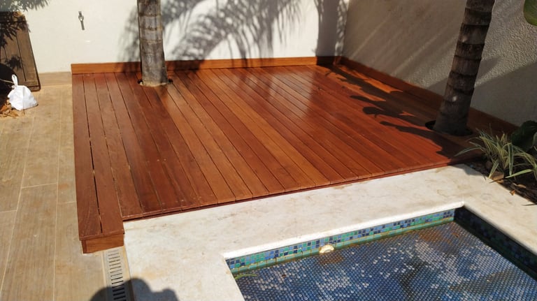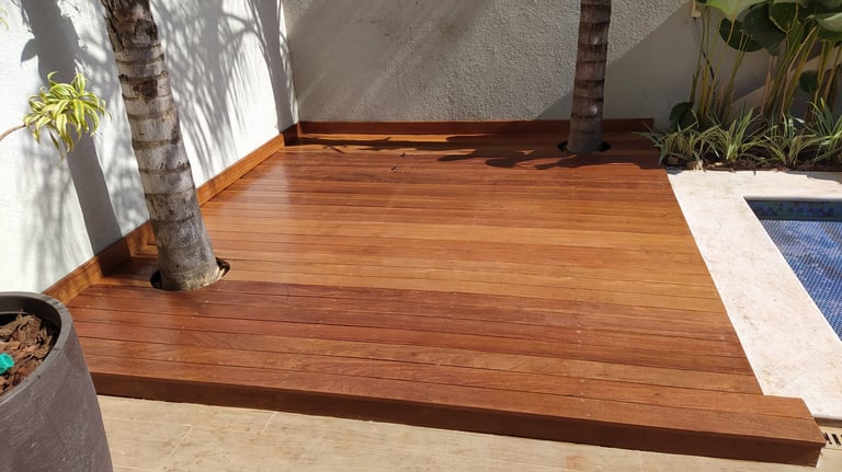 Nosos decks personalizados são estruturas de madeira projetadas sob medida para se adaptarem a diferentes espaços e necessidades, agregando charme, funcionalidade e estilo a áreas externas.