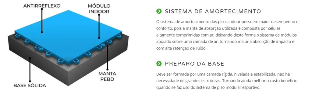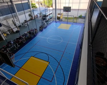 O piso esportivo modular indoor é ideal para quadras e áreas recreativas cobertas, proporcionando segurança, resistência e conforto.